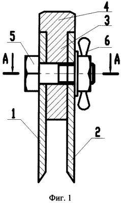 Устройство для резекции суставных поверхностей при артродезе включает в себя основное долото 1 (фиг.1), молоток (не показан), дополнительное долото 2 и направляющую 3, которая обеспечивает параллельность долот 1 и 2. Направляющая 3 может иметь промежуточный обушок 4 для основного 1 и дополнительного 2 долот. Долота и направляющая стягиваются болтом 5 с гайкой 6. Для исключения вращения долот относительно болта 5 направляющая 3 может иметь два паза, в которые вкладываются долота (фиг.2).
