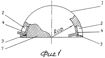 Известен также эндопротез вертлужной впадины [5], выполненный в виде полимерной чаши, от экваториальной плоскости которой берут начало попарно конвергирующие каналы, открывающиеся на сферической поверхности чаши. Элементы крепления выполнены в виде скоб, которые через конвергирующие каналы поочередно внедряют в тазовую кость, чем обеспечивается фиксация протеза. Однако процедура внедрения в костную ткань довольно травматична, сопровождается ударами инструмента по всему периметру протеза и занимает значительное время, существенно затягивая операцию.