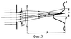 Через каждое из отверстий перфорационной линзы проходит световой пучок, создавая на сетчатке «пятно». Поле изображения состоит из этих двух «пятен». Расстояние между центрами «пятен» можно найти, строя ход осевых лучей, световых пучков, как показано на фиг.3. Введем обозначения: