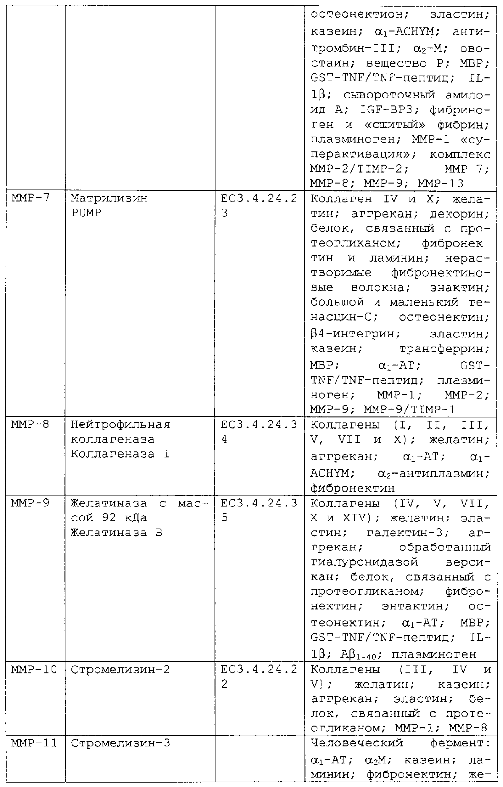 Подходящие защитные для хряща агенты включают, например, (1) антагонисты рецепторов семейства белков интерлейкинов-1, включая, например, IL-1 , IL-17 и IL-18; (2) антагонисты семейства рецепторов факторов некроза опухолей (TNF), включая, например, TNF-R1; (3) агонисты рецепторов интерлейкина 4, 10 и 13; (4) агонисты надсемейства рецепторов TGF-P, включая, например, BMP-2, BMP-4 и BMP-7; (5) ингибиторы COX-2; (6) ингибиторы семейства МАР-киназы, включая, например, р38 МАРкиназу; (7) ингибиторы семейства белков матричных металлопротеиназ (ММР), включая, например, ММР-3 и ММР-9; (8) ингибиторы семейства белков NF-кВ, включая, например, димерный комплекс р50/р65 с 1кВ; (9) ингибиторы семейства синтазы окиси азота (NOS), включая, например, iNOS; (10) агонисты и антагонисты интегриновых рецепторов, включая, например, агонисты V 3-интегрина; (11) ингибиторы семейства протеинкиназы С (РКС); (12) ингибиторы семейства тирозиновых протеинкиназ, включая, например, подсемейство src; (13) модуляторы протеин-тирозинфосфатаз; и (14) ингибиторы доменов гомологии-2 белков scr (SH2).