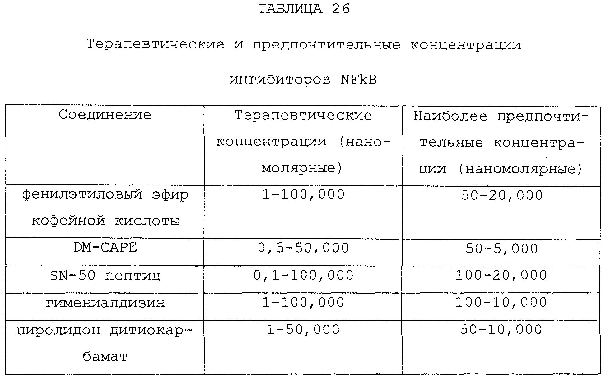 Последующие препараты и пределы концентраций в растворе в физиологическом жидкости-носителе подходят для использования по настоящему изобретению.