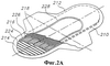 Фигуры 2а, 2б, и 2в показывают вид с частичным разрезом, вид в поперечном разрезе и вид сверху, соответственно, для образца женской прокладки в соответствии со вторым вариантом осуществления настоящего изобретения.