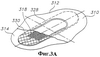Фигуры 3а, 3б, и 3в показывают вид с частичным разрезом, вид в поперечном разрезе и вид сверху, соответственно, для образца женской прокладки в соответствии с третьим вариантом осуществления настоящего изобретения.