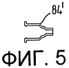 В конструкцию шприца 62 входит цилиндр 64, имеющий основную цилиндрическую часть 66, конический уступ, цилиндрическую шейку 70. Шприц 62 также включает поршень 72, имеющий шток 74 для воздействия на головку 76 поршня, выполненную с созданием уплотнения между ней и основной цилиндрической частью цилиндра посредством уплотнительного кольца 78. Шейка 70 цилиндра 64 на заднем конце 80 имеет внутреннюю кольцеобразную канавку. Фиксатор 12, удерживающий иглу 22, может быть присоединен к втулке 84 (или к втулке 84′ в другом варианте выполнения, показанной на фиг.5), после чего фиксатор 12 может быть введен в шейку 70 цилиндра 64. Образованная при этом конфигурация показана на фиг.4А, из которой видно, что выступы 46 находятся в упругом зацеплении с канавкой на заднем конце 80 шейки 70. Упругость выступов 46 и ножек 30 такова, что, когда поршень 72 отводят назад, чтобы втянуть вещество (вакцину, лекарство или органическое вещество, такое как кровь) в цилиндр 64, фиксатор 12 и игла 22 удерживаются на месте, при этом поперечные поверхности 61 выступов 46 находятся в зацеплении в канавке. Кроме того, втулка 84 снабжена стопорным элементом или стопорной поверхностью 86 для предотвращения перемещения иглы 22 вперед при нажатии на поршень 72. Благодаря наличию щели 86 между ножками 30 жидкость может вытекать из цилиндра через эту щель, поступать во входное отверстие 24 и далее по игле 22, а также перемещаться в обратном направлении.