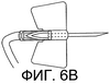 фиг.6A-6D схематически изображают виды сбоку блокирующего механизма, представленного на фиг.1А-1С, встроенного в предпочтительный катетер с крылышками с несколько более короткой иглой, чем та, что представлена на фиг.1А-1С;