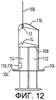 Поршень 108 имеет шток 112 крестообразного сечения. Одна из пластин 114 штока 112 входит в паз 116, образованный двумя пластинами 118, из которых только одна показана на фиг.12 и которые предотвращают вращение поршня и штока. На фиг.11 показан еще один вариант выполнения, отличающийся от варианта на фиг.10 тем, что цилиндр 100 шприца имеет некруглую форму, в данном случае эллиптическую. В этом варианте можно обойтись без паза и пластин 116, 118. Следует указать, что на фиг.12 показан боковой вид как варианта на фиг.11, так и варианта на фиг.10. В обоих этих вариантах игла 106 удерживается на месте выступами 46 на внутренней канавке шприца, и как только поршень оказывается введенным полностью, соединитель 14 поршня 108 входит в зацепление с фиксатором 12, после чего игла 106 отводится внутрь шприца при отводе поршня 108.