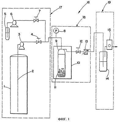 на фиг.1 – схема обычной экстракционной установки, в которой используется сверхкритический флюид,