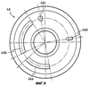 Как показано на фиг.6, второй диск 46 представляет собой кольцо, оснащенное четырьмя угловыми каналами 46а, 46b, 46с, 46d, которые расположены на радиальном расстоянии от центра второго диска 46, равном радиальному расстоянию соединительных окон 44а от центра первого диска 44.