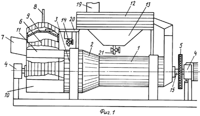 На фиг.2 представлен шнек с валом – 15, витками шнека – 16 и диспергирующей – 17 и калибрующей – 18 решетками.