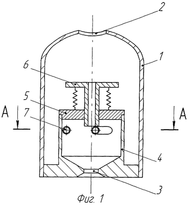 При снижении параметров подводимой жидкости (расхода и давления) усилие на подпружиненную втулку 6 уменьшается, при этом втулка 6 поднимается, а расстояние от верхней кромки втулки 6 до выходного отверстия 3 увеличивается, повышая степень взаимодействия центральной сплошной струи с вращающимся кольцевым потоком за счет увеличения продолжительности взаимодействия. В результате этого дисперсность распыленной жидкости становится равной первоначальной дисперсности.