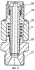 Распылительный пистолет состоит из корпуса 1 с рукояткой 2, клапаном 3, шарнирным соединением 4 для подключения к шлангу высокого давления. Пистолет также имеет распылительное сопло 5, которое вместе с резьбовой пробкой 6 и уплотнением 7, состоящим из двух частей, расположенных по обе стороны от резьбовой пробки 6, укреплены во вкладыше 8, при этом распылительное сопло 5 установлено в торцевой части вкладыша 8. Вкладыш 8 размещен в оправе 9, выполнен в форме полого цилиндра, на внутренней поверхности которого имеется резьбовой участок для размещения резьбовой пробки 6, и соединен с поворотным рычагом 10. Оправа 9 выполнена в виде втулки, в боковой поверхности которой выполнен угловой паз 11. Поворотный рычаг 10, установленный с возможностью перемещения в угловом пазу 11, образуют средство для быстрого снятия и очистки распылительного сопла 5 в виде комбинированного байонетного соединения. Оправа 9 соединена с накидной гайкой 12 посредством муфты 13 и держателя 14. Муфта 13 имеет с обоих торцев резьбовые участки, а также содержит расположенные в ней проставку 15, пружину 16 и уплотнительные кольца 17. Одним резьбовым участком муфта 13 соединена с резьбовым участком оправы 9, а другим – с держателем 14, который в свою очередь соединен с накидной гайкой 12. Накидная гайка 12 может быть непосредственно соединена с корпусом 1, как это показано на фигуре 1, а может – через удлинитель 18. Удлинитель 18 состоит из внутреннего полимерного отрезка трубы 19, наружного 20, например алюминиевого, и наконечников 21 и 22. В зазоре между внутренним 19 и наружным 20 отрезками труб размещено, по меньшей мере, одно резиновое кольцо 23, а наконечники 21 и 22 запрессованы посредством металлических обойм 24 и резиновых уплотнительных втулок 25 на концевых участках труб 19 и 20. Наконечник 21 имеет резьбовой участок для соединения, например, посредством накидной гайки 12 с держателем 14, а наконечник 22 оснащен аналогичной накидной гайкой 12 для соединения с корпусом 1. Шарнирное соединение 4 состоит из поворотного 26 и соединительного 27 штуцеров, между смежными торцевыми поверхностями которых размещен пружинный элемент 28, и пустотелого винта 29. Поворотный штуцер 26 имеет резьбовой участок для монтажа в рукоятке 2, а соединительный 27 – для подключения к шлангу высокого давления (не показан). При этом пружинный элемент 28 остается расположенным в замкнутом цилиндрическом объеме, образованном внутренними поверхностями штуцеров 26 и 27. Пустотелый винт 29 неподвижно установлен посредством резьбового участка в соединительном штуцере 27 и с возможностью поворота его головки 30 в поворотном штуцере 26. При этом внутренняя полость пустотелого винта 29 сообщает проходные каналы штуцеров 26 и 27 между собой. В полости рукоятки 2 с опорой на поворотный штуцер 26 установлен сменный фильтр тонкой очистки 31.