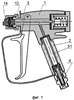 2. Распылительный пистолет по п.1, отличающийся тем, что он снабжен удлинителем, выполненным в виде двух коаксиально расположенных отрезков труб с наконечниками, при этом внутренний отрезок трубы выполнен из полимерного материала, а наружный – из металла, в зазоре между внутренним и наружным отрезками трубы размещено по меньшей мере одно резиновое кольцо, а наконечники запрессованы посредством обойм на концевых участках труб с возможностью соединения одного из них с корпусом, а другого – с муфтой.