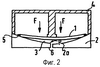 За счет воздействия внешнего усилия F и/или Р конструктивный элемент 1 упругодеформируется таким образом, что он прогибается в направлении удерживающего устройства 2. Как видно из фиг.2, радиус кривизны упругодеформированного конструктивного элемента 1 при этом больше радиуса кривизны удерживающего устройства 2, так что между конструктивным элементом 1 и удерживающим устройством 2 имеется полость 3. Объем полости 3 меньше, однако, по сравнению с исходным состоянием на фиг.1. Упругое деформирование конструктивного элемента 1 за счет воздействия внешних усилий приводит также к тому, что поверхность прилегания между конструктивным элементом 1 и удерживающим устройством 2 увеличивается и, тем самым, полость 3 может быть воздухонепроницаемо закупорена с применением уплотнительного материала 5. Уплотнительный материал 5 при этом представляет собой обычно температуростойкий модифицированный силиконовый материал, наносимый на краевую зону конструктивного элемента 1.