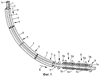 фиг.6 – вид сбоку криволинейной установки для непрерывной разливки заготовок в формате слябов с “мягким обжатием” в качестве второй альтернативы.