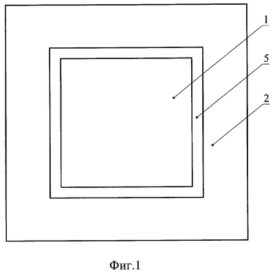 На фиг.1 схематично показаны скрепленные кремниевая пластина и стеклянная подложка, вид сверху.