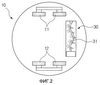 Как показано на фиг.1, по обе стороны корпуса 10 пылесоса имеется совокупность подвижных колес 11, 12. Корпус 10 пылесоса имеет приблизительно круглую форму и снабжен цилиндрической крышкой (не показана).