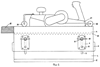 Ручной фуговально-рейсмусовый станок Фиг.1 предназначен для использования в качестве строгающего инструмента ручного рубанка 12 с установленными на нем крутящимися элементами (в данном случае подшипниками) 14, с помощью которых осуществляется его горизонтальное поступательно-возвратное перемещение в процессе строгания. Под рубанком установлена обрабатываемая заготовка 13.