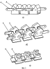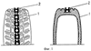 Предварительно собирается гибкая цепь 2 из отдельных шипов 3, шарнирно соединенных между собой посредством пластин 4. Длина цепи определяется длиной окружности шины, т.е. длиной окружности формы, в которой осуществляют отливку шины.