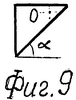 На фиг.2-9 изображены возможные варианты выполнения светозащитных экранов, и на них показаны углы наклона границ предлагаемых светозащитных экранов, а также показана ось вращения О с размещением ее в верхнем углу плоскости экрана. На фиг.2 изображен светозащитный экран слева направо, с частью границ горизонтальной и далее с продолговатым овалом с хордой под углом , на фоне светофильтра известного способа и правой оправы очков пунктирными линиями. На фиг.3 изображен светозащитный экран слева направо, часть границ с продолговатым овалом и далее вертикальной границей. На фиг.4 изображен светозащитный экран с продолговатым овалом между горизонтальной и вертикальными частями. На фиг.5 изображен светозащитный экран с частью границ горизонтальной и далее под наклонным углом к горизонту, слева направо. На фиг.6 изображен светозащитный экран с границами частично с наклоном под углом и далее вертикальной частью, слева направо. На фиг.7 изображен светозащитный экран с границами, в которых часть под углом к горизонту, расположенная между горизонтальной и вертикальной частями. На фиг.8 изображен светозащитный экран с границей с продолговатым овалом вместо горизонтальной и вертикальной частей. На фиг.9 изображен светозащитный экран с границей, выполненной полностью под углом к горизонту вместо горизонтальной и вертикальной частей.
