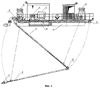 Возникающий при опускании головной 8 части дифферент корпуса устраняется перемещением дополнительных понтонов в сторону его большей осадки. Управление двигателями привода перемещения может осуществляться автоматически по сигналу от датчиков дифферента, размещенных в носовой и кормовой частях корпуса, или непосредственно оператором установки. Оператор визуально определяет дифферент и включает двигатели привода 14, обеспечивающие перемещение дополнительных понтонов к той части корпуса, которая имеет большую осадку. Выравнивание дифферента, возникающего при подъеме головной части, производится аналогично.