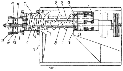 фиг.3 – часть шнекового механизма, изображенного на фиг.1, снабженного отдельным приводом для режущего приспособления;