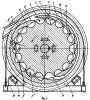 Насос состоит из корпуса 1 (фиг.1), представляющего собой полое цилиндрическое кольцо с выкидным патрубком 2 (фиг.2), колеса 3 с жесткими уплотнительными кольцами 4. Колесо 3 выполнено в виде шестерни с прямыми зубьями, образующими открытые продольные выборки 5 (фиг.2) с вогнутым днищем 6, переходящие на набегающей на поток стороне в прямолинейные плоскости В , образующие с вектором окружной скорости Г тупой угол   . Насос содержит также направляющий аппарат 7, который охватывает колесо 3 с зазором и выполнен с продольными выборками 8, обращенными открытой стороной к выборкам колеса и имеющими с приемной стороны прямолинейную плоскость З , переходящую на отводной стороне в криволинейную Л . Направляющий аппарат снабжен разделителями потока 9 и 10, между которыми на его наружной поверхности выполнен секторный канал 11, соединяющий основной выкидной канал 12 с дополнительным 13. Колесо 3 установлено между крышками 14 и 15, в которых в центральной зоне выполнены кольцевые расточки 16 и 77, соединенные через входные радиальные каналы 18 (фиг.3) (основной) и 19 (дополнительный) с полостями выборок колеса и направляющего аппарата.. Внутри насоса установлен приводной вал 20, разгрузочный узел 21, узел торцового уплотнения 22 и подшипники скольжения 23 и 24. В разгрузочный узел 21 входят пята 25 с упорными кольцами 26, охваченная кольцами 27 и 28. Узел торцового уплотнения 22 состоит из вращающейся втулки 29 и подвижного стакана 30 с уплотнительными кольцами 31. С одной стороны насоса установлен входной патрубок 32, а с другой – полумуфта 33. Насос крепится к лапкам 34 прижимными поясами 35.