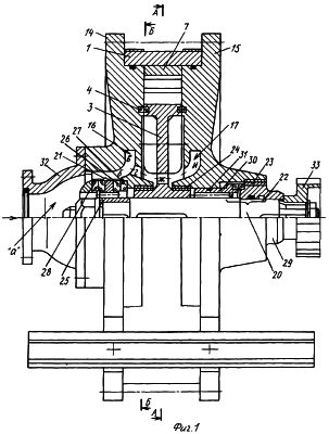 Осевое усилие, приходящееся на торец вала 20, воспринимается пятой 25. Полость всасывания ( а , б , в , г , ж , и ) отделена от атмосферы торцовым уплотнением 22.