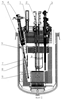 Известна система перегрузки реактора, содержащая большую и малую поворотные пробки, эксцентричные относительно друг друга, механизм перегрузки, установленный на малой поворотной пробке и служащий для внутриреакторной перестановки элементов активной зоны, элеватор с кареткой, содержащей гнездо и служащий для перемещения элементов активной зоны между нижним и верхним положениями перегрузочный канал, расположенный в неподвижной крышке реактора, через который захват внереакторной перегрузочной машины осуществляет перегрузку элементов активной зоны между гнездом элеватора и внереакторным хранилищем. Механизмом перегрузки элемент активной зоны устанавливается в гнездо элеватора, расположенное в нижнем положении, и элеватором производится подъем элемента активной зоны в верхнее положение таким образом, чтобы головка элемента активной зоны выступала над уровнем теплоносителя, а ось симметрии гнезда элеватора совпала с осью симметрии перегрузочного канала. Перегрузочной машиной осуществляется подъем элемента активной зоны через перегрузочный канал из реактора и установка во внереакторное хранилище. Загрузка элементов активной зоны в реактор производится в обратной последовательности. Данная система имеет преимущество перед вышеприведенной в том, что при перегрузке захват перегрузочной машины не погружается в жидкий теплоноситель, а захватывает элемент активной зоны за головку, находящуюся в среде инертного газа. (см. БН-350 ж. “Атомная энергия” 1966 декабрь, т.21, вып.6).