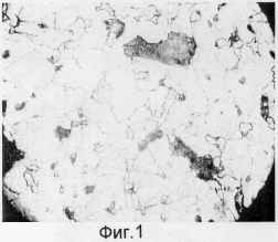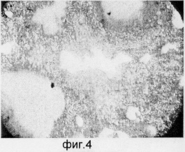Предлагается способ травления металлографических шлифов из оловянистых бронз, основанный на количественной оценке распределения и размеров упрочняющей фазы, – эвтектоида. При этом способе шлифы подвергаются глубокому травлению с помощью 1% раствора хлорной меди в соляной кислоте. Способ травления заключается в том, что полировальный шлиф окунают в ванну с травителем на 40-60 сек, затем вытаскивают и окунают в ванну с водой. Высушивают образец промокательной бумагой и вновь окунают в травитель, но уже с меньшей выдержкой 1-10 сек. После каждой процедуры травления образцы просматривают в микроскоп, цвет матрицы становится темнее и равномернее. Если до травления ее цвет был неоднородным фиг.1, после обычного травления, фиг.2 матрица имеет также не однородный цвет, а после травления по предложенному способу она приобретает монотонно темный цвет, фиг.3. Упрочняющая фаза – эвтектоид не травится, а располагается в виде светлых практически белых включений различной величины, после окончания травления образцы фотографируют и вводят в компьютер. Если образец перетравлен, матрица неоднородна, фиг.4, отсюда количество и размер структурных составляющих посчитан неверно. Компьютерная программа, компьютерная обработка изображения – КОИ рассчитывает объемную долю и средний размер частиц структуры при условии, что шлиф протравлен до монотонно темного цвета матрицы и светлых пятен упрочняющей фазы – эвтектоида.