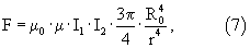 Зависимость силы Ампера F при взаимодействии катушек с током от величины этого тока можно рассчитать по формуле (7).