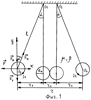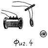 Наиболее близкой к предлагаемой установке является установка (фиг.4) для демонстрации взаимодействия двух катушек с током, подвешенных на двух тонких проводах, (О.Ф.Кабардин. Физика. Справочные материалы. М.: Просвещение 1991, с.184, рис.190.) Установка содержит две плоские катушки индуктивности и источник постоянного тока. При подключении катушек к источнику постоянного тока наблюдается отклонение одной катушки от другой. При внесении в одну из катушек железного стержня, другая катушка отклоняется на больший угол. Однако эта установка не позволяет измерить силу Ампера при взаимодействии катушек индуктивности, а также определить величину магнитной проницаемости жидкой среды, в которой эти катушки могут взаимодействовать.