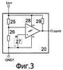 На фиг.1 и фиг.2 пунктирной линией показан вариант связей для дополнительного управления полупроводниковым ключом 15 со стороны вывода 16 с помощью второго дополнительного полупроводникового ключа 23, включенного параллельно первому дополнительному полупроводниковому ключу 22. Второй дополнительный полупроводниковый ключ 23 управляется через дополнительный токоограничивающий каскад 24, который соединяет управляющий вывод второго дополнительного ключа 23 с помощью шины 14 с выводом 16. На фиг.3 показан пример схемного решения амплитудного детектора 20. Амплитудный детектор 20 содержит вывод для подключения к входному напряжению, снимаемому с катода диода 18 (на фиг.3 не показан), к которому подключены верхний вывод делителя напряжения, образованного последовательно включенными резисторами 25 и 26. Нижний вывод делителя напряжения соединен с общим проводом, к которому подключен минус источника опорного напряжения 27 и вывод отрицательного входа напряжения питания компаратора 28. Выводы положительного напряжения питания компаратора 28 и резистора 29 также соединены с верхним выводом делителя напряжения 25, 26. Общая точка резисторов 25 и 26 подключена к инверсному входу компаратора 28, положительный вывод источника опорного напряжения 27 подключен к прямому входу компаратора 28. Точка соединения нижнего вывода резистора 29 и выхода компаратора 28 подключена к управляющему входу дополнительного полупроводникового ключа 22 (на фиг.3 не показан).