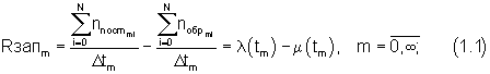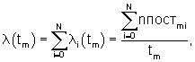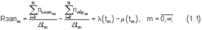 Известно (см., например, Л.Клейнрок Теория массового обслуживания”, пер. с англ. И.И.Грушко; ред. В.И.Нейман – М.: Машиностроение, 1979, стр.31-34), что интенсивность суммарного поступающего потока равна а интенсивность суммарного обработанного потока где nпостmi и nобрmi – количество поступивших и обработанных пакетов i-го потока соответственно в интервале времени tm.