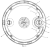 На фиг.4 показан вид сверху на вакуумную камеру 3 и устройство 17 для определения вязкости концентрированного продукта. Оно представляет собой кольцо 20 с прорезями. Такие же отверстия выполнены на полоске (не показана), совмещенной с кольцом 20 и фиксирующейся шплинтом 21. Внутренняя емкость может быть дополнительно снабжена сливными отверстиями 22.