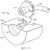 Муфта 56 выполнена такой конфигурации, которая сводит к минимуму возможность ее поворота внутри выемки 60 для муфты в процессе выполнения операции обжатия. Несмотря на то, что можно выполнить множество конфигураций, предохраняющих от поворота, один вариант состоит в выполнении выемки 60 для муфты с шестиугольной формой. При такой форме выемки муфта 56 также может иметь шестиугольную форму, как показано на фиг.4 и 6. Выемка 60 для муфты имеет размеры, превышающие наружные размеры муфты 56. Может быть выполнен небольшой зазор между боковыми стенками выемки 60 для муфты и муфтой 56, когда муфта установлена на месте в выемке 60 для муфты. Небольшой зазор обеспечивает возможность легкой вставки и удаления муфты 56, когда он надет на трубу 52, как показано на фиг.4. Однако этот зазор не должен иметь такую большую величину, при которой возникает возможность значительного перемещения муфты 56 в продольном направлении в обжимном штампе 54.