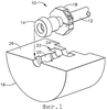Выемка 20 для фитинга и паз 24 для трубы могут быть выполнены таких размеров, которые обеспечивают возможность размещения фитинга 14 и трубы 12 с определенными размерами. Муфта 18 выполнена с конфигурацией, которая сводит к минимуму возможность ее поворота внутри выемки 22 для муфты в процессе выполнения операции обжатия. Несмотря на то, что можно выполнить множество конфигураций, предохраняющих от поворота, один вариант состоит в выполнении выемки 22 для муфты с шестиугольной формой. При такой форме выемки муфта 18 также может иметь шестиугольную форму, как показано на фиг.1 и 3. Естественно, другие виды “противодействующих повороту” элементов могут образовывать часть муфты 18 и/или выемки 22. В качестве одного примера можно привести введение в конструкцию установочного винта.