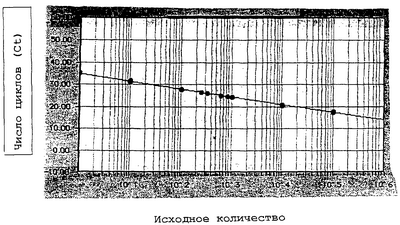 Настоящее изобретение поясняется не ограничивающими его объема охраны примерами и путем ссылки на прилагаемый чертеж, на котором представлена стандартная кривая метода PCR гексона согласно изобретению.
