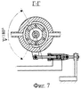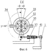 Распределительное устройство, показанное на фиг.3 и 5, выполнено клапанным и снабжено механизмом управления работой клапанов этого устройства. Управление клапанами может быть выполнено, например, электромагнитным или гидравлическим. На Фиг.3 и 5 клапаны выполнены с гидравлической камерой 22 управления и состоят, например, из установленного в корпусе седла 23, клапана 24, толкателя 25 и поршня 26. Клапаны объединены в блок и установлены в общий корпус 20 распределительного устройства. При этом входные каналы 27 клапанов объединены общим каналом 28, который проходит внутри управляющего работой клапанов устройства, а выходные каналы 29 соединены с каналами 19 трубопровода 16, а управляющие – 30 соединяют камеры 22 управления с выходными каналами 31 вращающегося золотника 32, установленного в невращающемся корпусе 33 управляющего устройства. Общий канал 28 соединен через гидрос8 ъемник 17 и трубопровод 18 с источником 11 воды высокого давления (ИВД). Управляющее устройство механизма управления (Фиг.6, 7 и 8), в свою очередь, например, состоит из вращающегося совместно с корпусом распределительного устройства золотника 32 и корпуса 33, в котором выполнено не менее двух серповидных пазов с двумя, например 34 и 35, или более (по числу серповидных пазов) каналами, соединенными (Фиг.10) с гидрораспределителем 36.