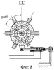 На фиг.9 показан вид по стрелке “Е” на торец коронки в правом и левом ее положении при ее горизонтальном перемещении.