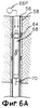 Чтобы гарантировать, что последовательность установки пакера начата в правильное время, должны быть учтены дополнительные факторы, как было объяснено ранее. Эти факторы могут включать в себя скорость (V) устройства 68А установки пакера и устройства 70А считывания, время, необходимое для накачки накачиваемого пакерного элемента устройства 68А установки пакера. Альтернативно устройство 68А установки пакера может быть остановлено в конкретном соединении (например, соединении С5А) и затем накачано, как требуется. В этом случае устройство 70А считывания может быть запрограммировано передавать сигналы управления на дисплей 124 (фиг.4В) на поверхности 60А, когда устройство 68А установки пакера проходит соединение 64А на требуемой глубине. Оператор может управлять устройством 98А накачки, чтобы начать накачку устройства 98А установки пакера. Альтернативно последовательность накачки может начинаться автоматически схемой 120 управления инструментом (фиг.4А).