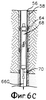 На фиг.6A-6D показано альтернативное выполнение транспортных механизмов для транспортировки перфорационного инструмента 68 и устройства 70 считывания через обсадную трубу 56. На фиг.6А транспортный механизм 66Р содержит насос для закачивания транспортировочной жидкости через внутренний диаметр обсадной трубы 56. Закачанная транспортировочная жидкость затем транспортирует перфорационный инструмент 68 и устройство 70 считывания через обсадную трубу 56. На фиг.6В транспортный механизм 66R содержит одно или более роботизированных устройств, прикрепленных к перфорационному инструменту 68 и устройству 70 считывания и выполненных с возможностью транспортировать перфорационный инструмент 68 и устройство 70 считывания через обсадную трубу 56. На фиг.6С транспортный механизм 66G использует силу тяжести (G), так что перфорационный инструмент 68 и устройство 70 считывания свободно падают через обсадную трубу 56. Свободное падение может быть через жидкость скважины внутри обсадной трубы 56 или через воздух внутри скважины 56. На фиг.6D транспортный механизм 66РА включает в себя парашют, который управляет скоростью опускания перфорационного инструмента 68 и устройства 70 считывания в скважину 56. Опять-таки парашют может работать в жидкости скважины или в воздухе, содержащемся в обсадной трубе 56.