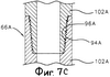 Система 50А также включает в себя множество идентификационных приборов 72 (фиг.3D), прикрепленных к манжетам 64А на обсадной трубе 56А и считываемых устройством 70А считывания. Кроме того, система 50А включает в себя транспортный механизм 66А для транспортировки устройства 68А установки пакера и устройства 70А считывания через обсадную трубу 56А скважины в Зону I. В этом выполнении транспортный механизм 66А содержит колонну труб, образованную трубчатыми элементами 102А. Как показано на фиг.7С, каждый трубчатый элемент 102А включает в себя охватываемую часть 94А соединения и охватывающую часть 96А соединения на противоположном конце. Это позволяет трубчатым элементам 102А скрепляться друг с другом для формирования транспортного механизма 66А. Кроме того, устройство 68А установки пакера может включать в себя центральную оправку в жидкостной связи с внутренним диаметром транспортного механизма 66А.