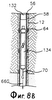 Далее, как показано на фиг.8В, устройство 132 настройки пакера приводится в действие так, что накачиваемый пакерный элемент устройства 132 герметично закрывает обсадную трубу 56 на желательной глубине. В этом выполнении устройство 132 установки пакера является автономным блоком со встроенным источником накачки. Как и в случае описанных ранее вариантов выполнения, устройство 70 считывания обеспечивает сигналы управления для управления устройством 132 установки пакера и процесса установки пакера. Например, накачиваемый пакерный элемент устройства 132 установки пакера может накачиваться, когда устройство 70 считывания проходит выбранное соединение 64 и принимает ответный сигнал от идентификационного прибора 72, содержащегося внутри выбранного соединения 64. Как также показано на фиг.8В, перфорационный инструмент 134 отделяется от устройства 132 установки пакера и продолжает свободно падать через обсадную трубу 56.