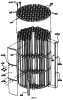 Как показано на фиг.6, пластины 30 предпочтительно включают верхнюю и нижнюю пластины соответственно на верхнем и нижнем концах корзины. В этом случае верхняя пластина предпочтительно снабжена устройствами для перемещения корзины, такими как болты с проушиной. Перфорированная нижняя пластина может быть также заменена или продублирована сплошной пластиной, как указывалось выше применительно к фиг.1.