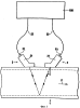 Блок S питания соединен через RC-звено RC, состоящее из резистора R1 и конденсатора С1, с одним входом Е1 полевого транзистора (FET), служащего выключателем SR. Далее управляющая логика SL через два конденсатора С01, С02 соединена со вторым входом Е2 полевого транзистора (FET). Ультразвуковой преобразователь 2 состоит в основном из пьезоэлемента, оснащенного дополнительными пассивными или активными элементами (резисторами, индуктивностями, диодами). Управляющей логикой SL управляет микропроцессор С.
