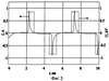 Как показано на фиг.3, напряжение возбуждения от источника переменного напряжения может также подаваться в виде импульсов напряжения с частотой следования от 10 до 1000 кГц (показаны пунктирной линией). В этом случае возрастает скорость нарастания напряжения на электродах и разрядном промежутке, по сравнению с синусоидальным возбуждением, в результате чего пробой может происходить при повышенном напряжении, что позволяет увеличить вкладываемую в разряд мощность. Кроме того, значительное перенапряжение при пробое приводит к улучшению однородности барьерного разряда, что обеспечивает более эффективное использование всего объема активной среды.