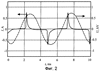 Кроме того, как показано на фиг.4, напряжение возбуждения может подаваться в виде синусоидального напряжения с частотой от 10 до 1000 кГц и, одновременно с этим, импульсов напряжения чередующейся полярности, которые совпадают по времени и полярности с максимумами синусоидального напряжения. Это позволяет уменьшить мощность импульсного источника напряжения при сохранении мощности, вкладываемой в разряд, и соответственно упростить и удешевить источник питания лазера.