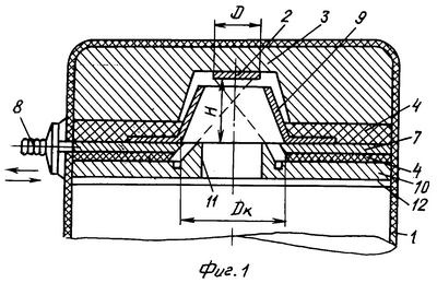где Dk – внутренний диаметр кожуха в сечении, совпадающем с плоскостью вершины распыляемого электрода, Н – расстояние от этой плоскости до плоскости мишени.
