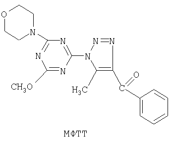 Известен также 2-метокси-4-морфолил-6-[(4′-фенилкарбонил-5′-метил-1′,2′,3′-триазол)-1′-ил]-1,3,5-триазин (МФТТ) формулы: