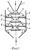 На фиг. 1 изображена схема смесителя-хлопьеобразователя сточной воды, на фиг. 2 – схема ориентировки направляющих потока дисков и колец активатора.